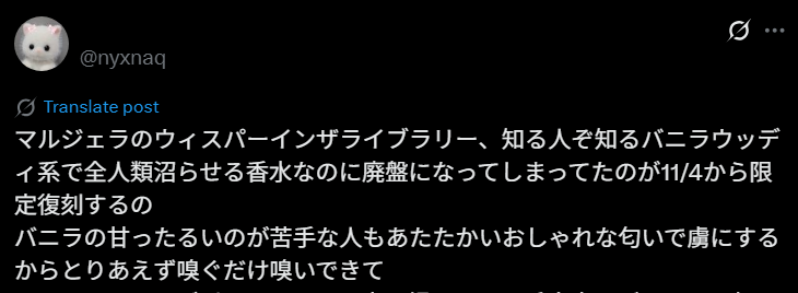 とくにウィスパーインザライブラリーは誰もが知っているメゾンマルジェラ。