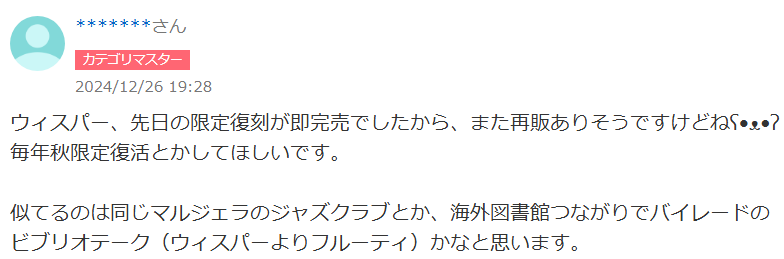 『ウィスパーインザライブラリー』がここまで人気の商品なら、年中販売していくはずだからです。
